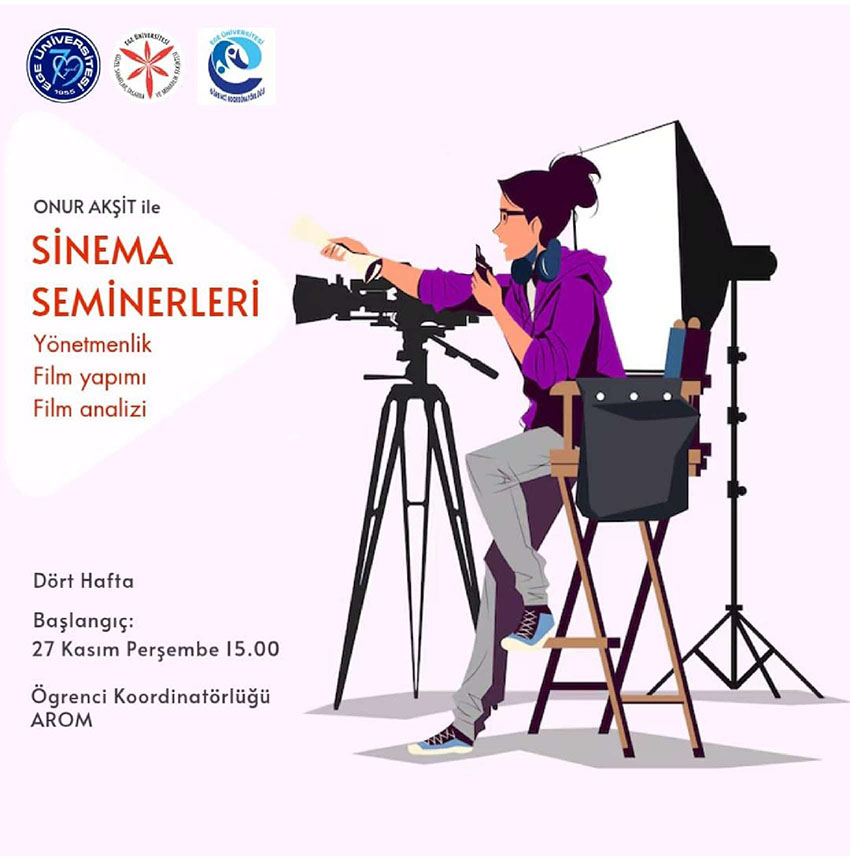 Üniversitemiz Öğrenci Koordinatörlüğü ve Güzel Sanatlar, Tasarım ve Mimarlık Fakültesi işbirliği ile üniversitemizde öğrenim gören tüm öğrencilerimiz için 27 Kasım 2025 tarihinden itibaren dört hafta boyunca perşembe günleri 15.00-16.00 saatleri arasında Öğrenci Koordinatörlüğü Araştırma Odaklı Öğrenci Merkezinde (AROM) ücretsiz olarak "Sinema Seminerleri" düzenlenecektir. Söz konusu etkinliğe katılmak isteyen öğrencilerimizin aşağıdaki linkten kayıt yaptırmaları gerekmekte olup kayıt kontenjanı 50 kişi ile sınırlıdır.
